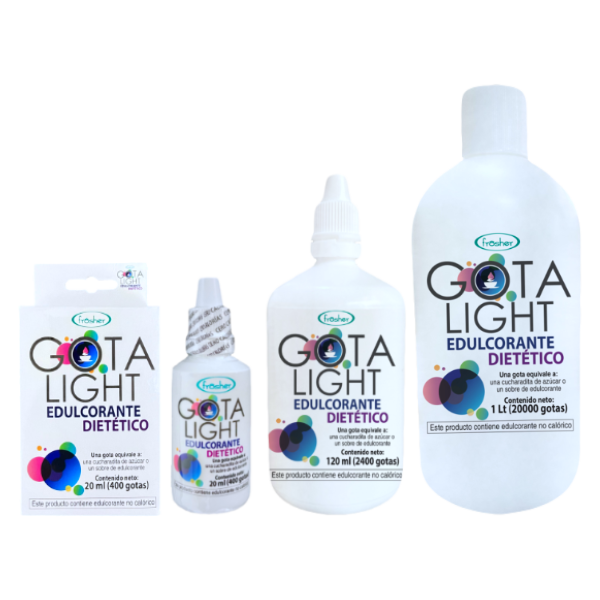 GOTA LIGHT Al ser un endulzante dietético que no utiliza carbohidratos en su formulación, es 100% sin calorías, y además mantiene su dulzor cuando es sometida a aumento de temperatura (cocción, horneado) o a congelación.